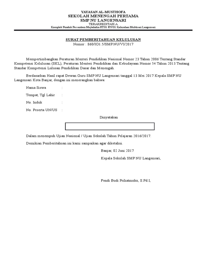 Surat Pemberitahuan Pengumuman Kelulusan Tahun 2016 Smkn 1 Purwodadi Surat Belajar Kiat Belajar